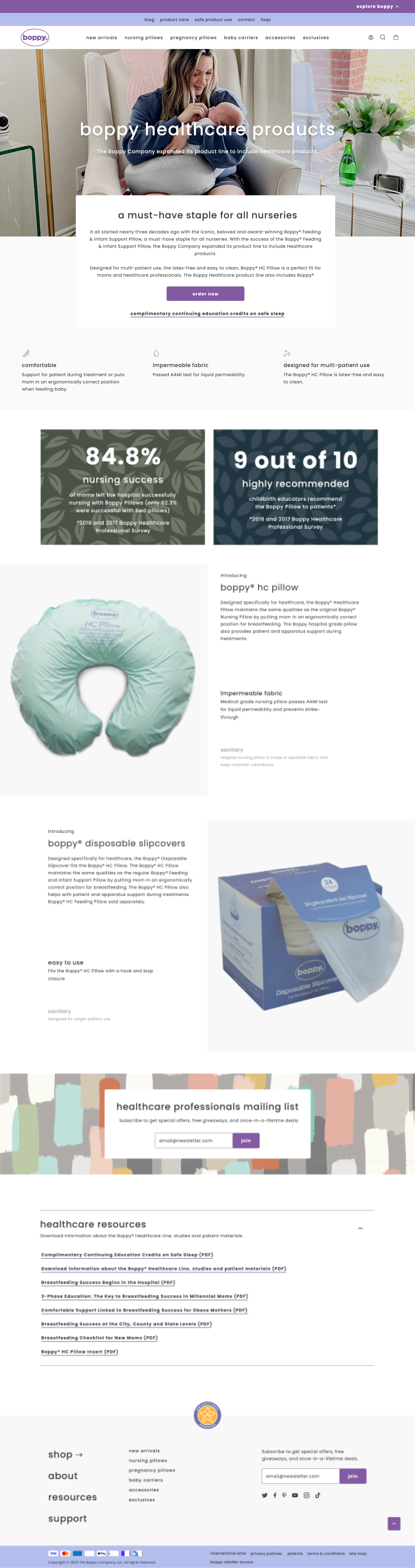 With Boppy aiming to grow their business with a focus in both B2C and B2B, we were tasked with creating custom pages to showcase their healthcare products and their values.