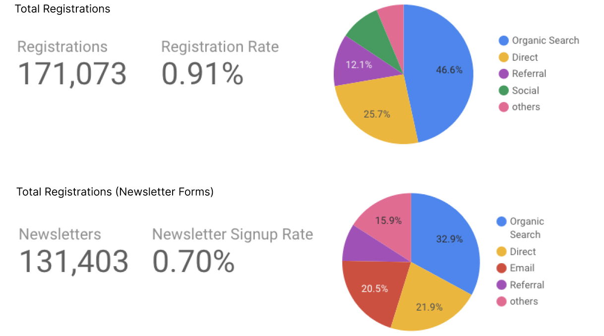 In terms of conversion -- from newsletter registration to transactions -- the largest category of users comes from organic search.